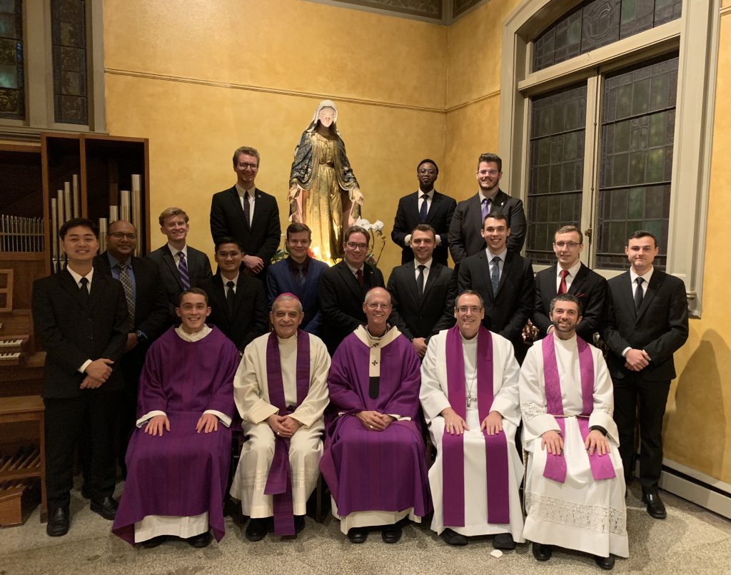 Mary is always with us if we have the eyes of faith to see. She is ready to enfold us in her Motherly mantle to protect and lead us to her Son. To aid our ability to ‘see’ this, I will close by sharing with you this picture from our Christmas gathering with the seminarians earlier this week as a reminder that Mary is always with us and she is always with her Son.